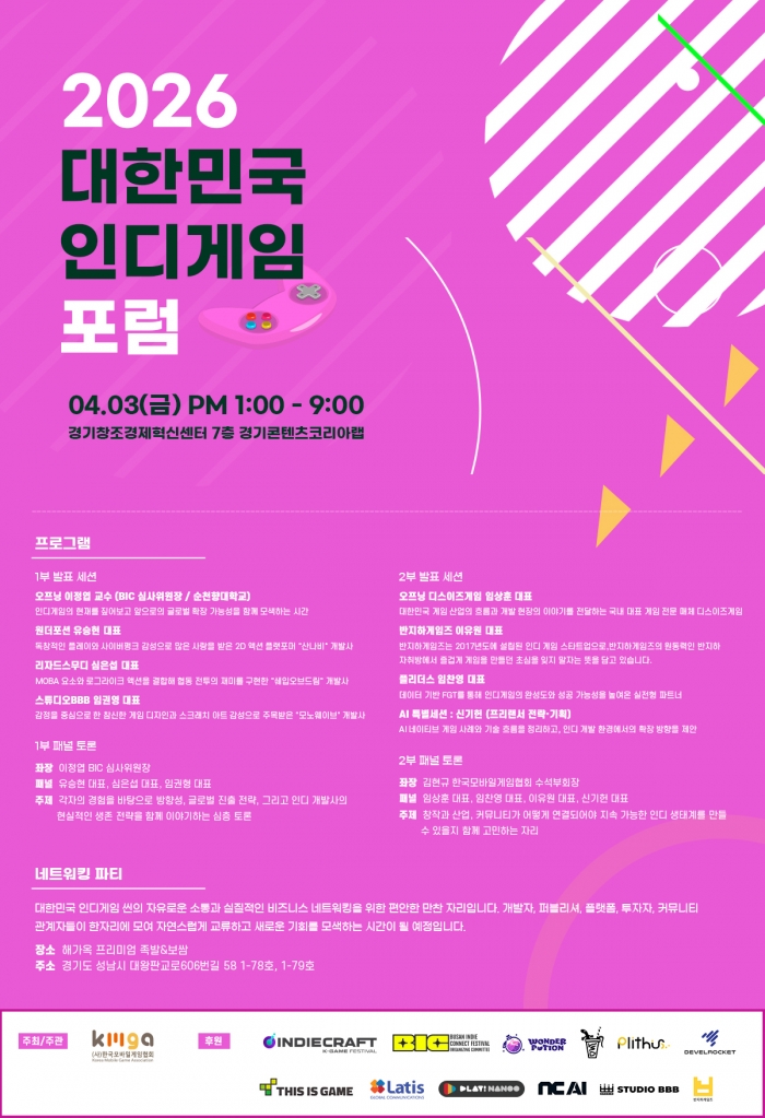 2026 대한민국 인디게임포럼\' 개..